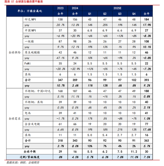 体现到平衡表的结果上来看,静态视角下,原生镍整体过剩幅度相比2024年进一步加大,镍铁平衡受不锈钢减产预期拖累,过剩扩大;一级镍受益于额外需求支撑,过剩有所收窄。不过展望2025下半年,无论是原生镍整体或是一级镍,平衡均向着过剩幅度扩大的方向前进。