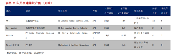中远期产能天花板临近,年内产量增量有限。2024年印尼政府已决定停止审批新增的火法冶炼产能,镍铁产能天花板已经逼近;随着印尼政府态度的明确,已有众多镍铁规划产能停建或推迟,25年内或有可能新增的产能约12万金属吨/年,下半年能带来的产量增量预计有限。